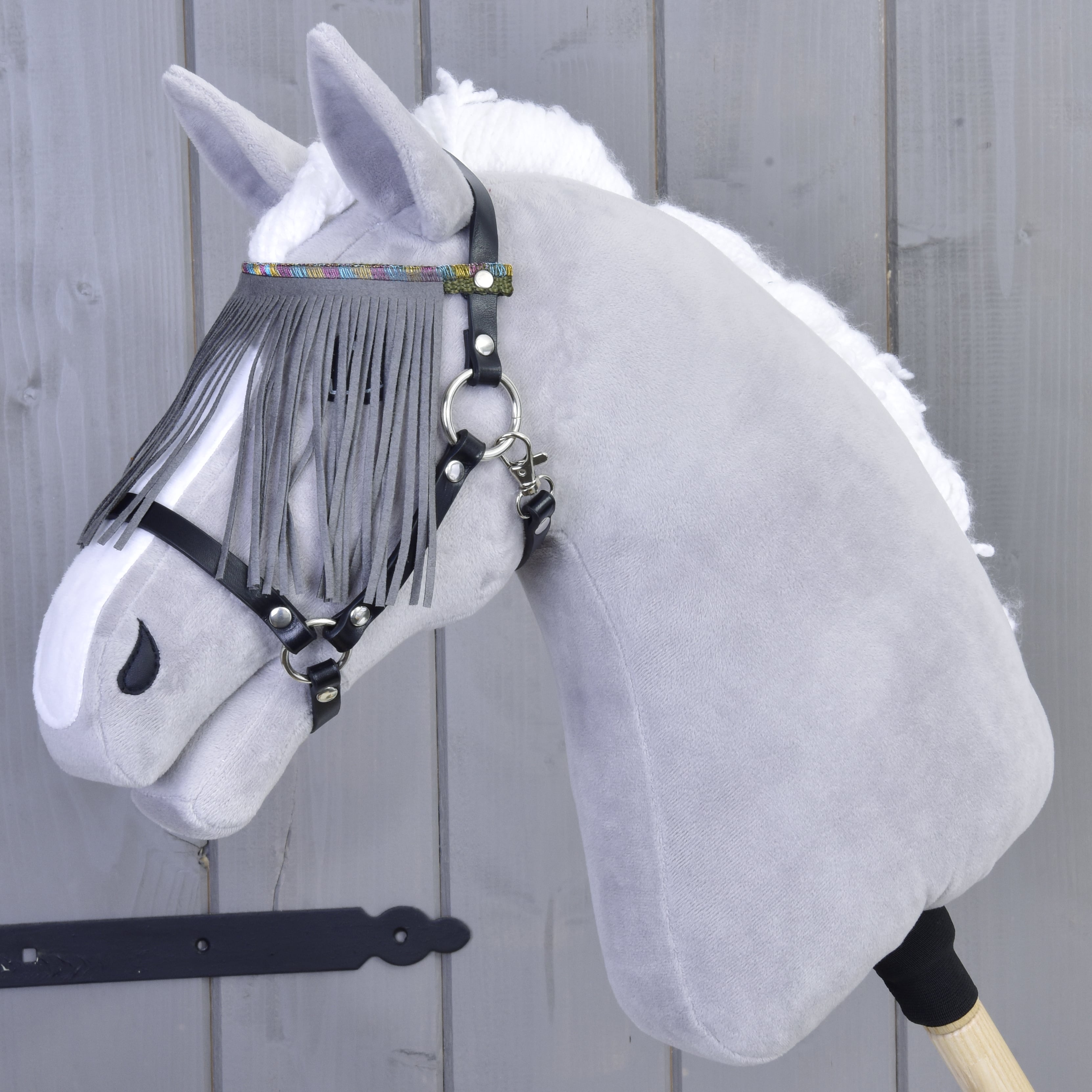A beautiful black halter with fringes for your Hobby Horse. The halter will protect your horse from intrusive insects. This spring, this halter should not be missing in your equipment
