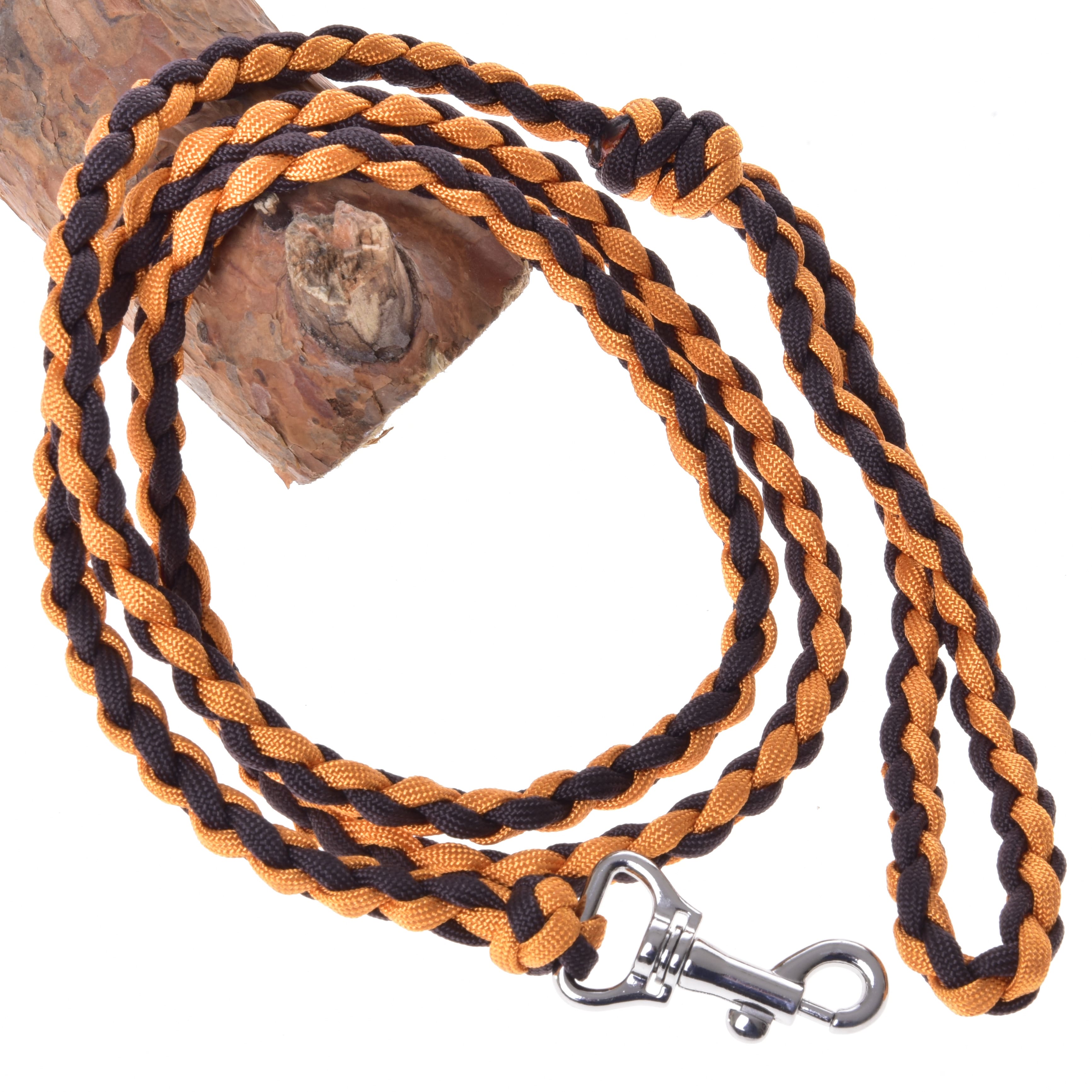 Hand-knitted lead rope made of soft paracord, making it flexible and comfortable to hold. Equipped with a high-quality carabiner and finished with a practical loop. The vibrant colors are truly unique.