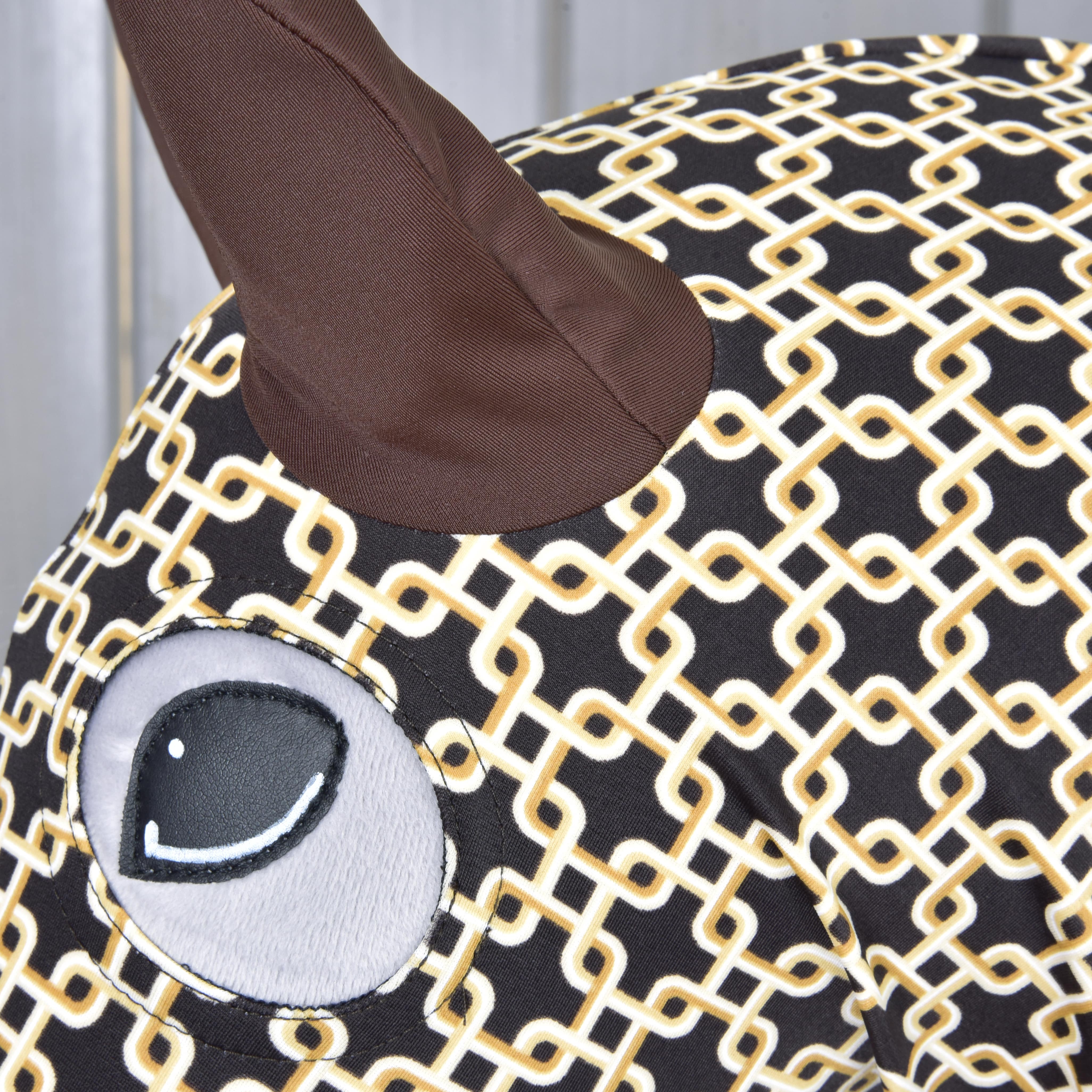 This protective suit is made of high-quality Lycra and therefore adapts better to the shape of the horse. Great attention has been paid to the eye holes and the correct size of the ears. The LarDen protection suit is easy to put on and easy to maintain. The lower part of the suit is equipped with a drawstring and a press stud for better tightening. You can choose from different designs to suit your Hobby Horse.