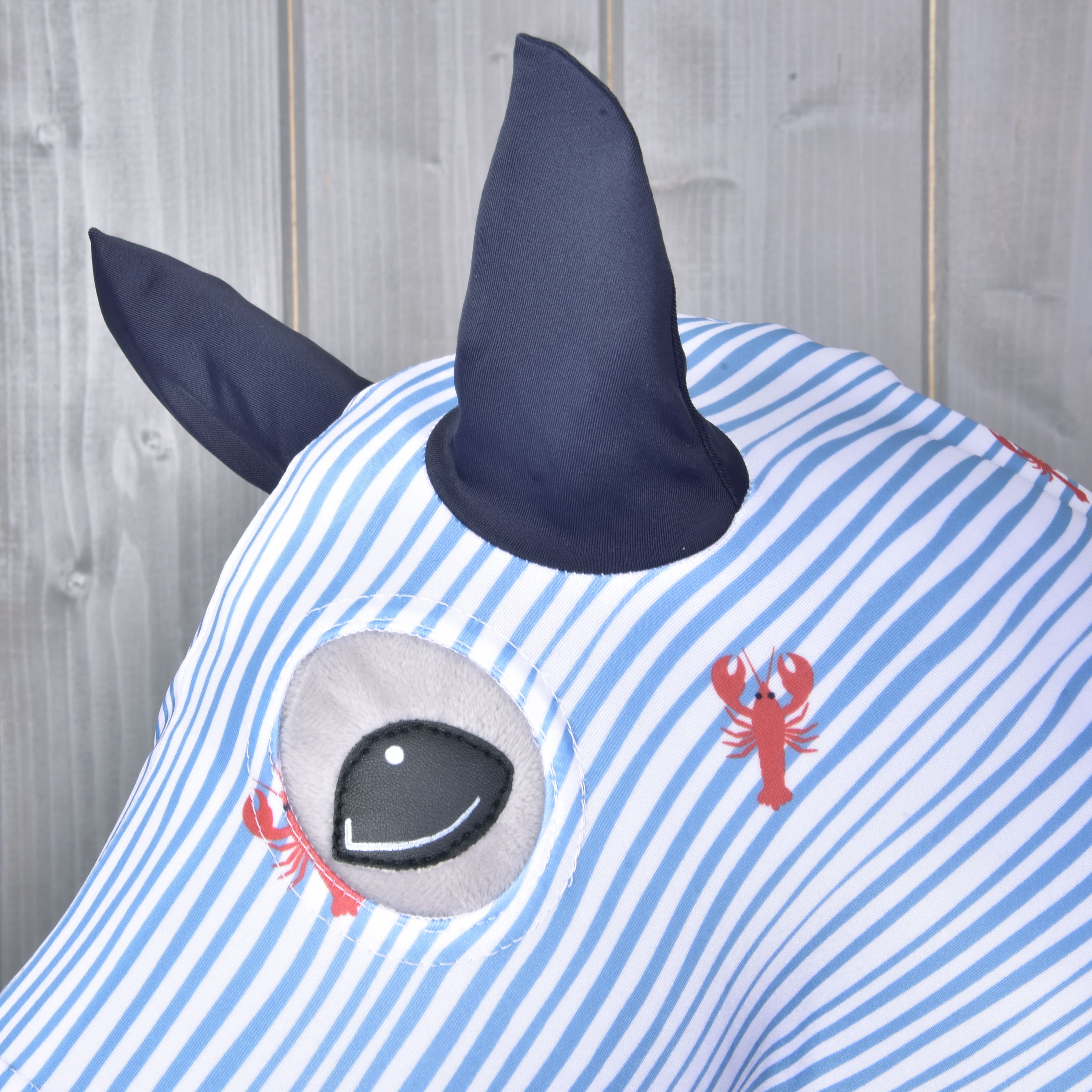 This protective suit is made of high-quality Lycra and therefore adapts better to the shape of the horse. Great attention has been paid to the eye holes and the correct size of the ears. The LarDen protection suit is easy to put on and easy to maintain. The lower part of the suit is equipped with a drawstring and a press stud for better tightening. You can choose from different designs to suit your Hobby Horse.