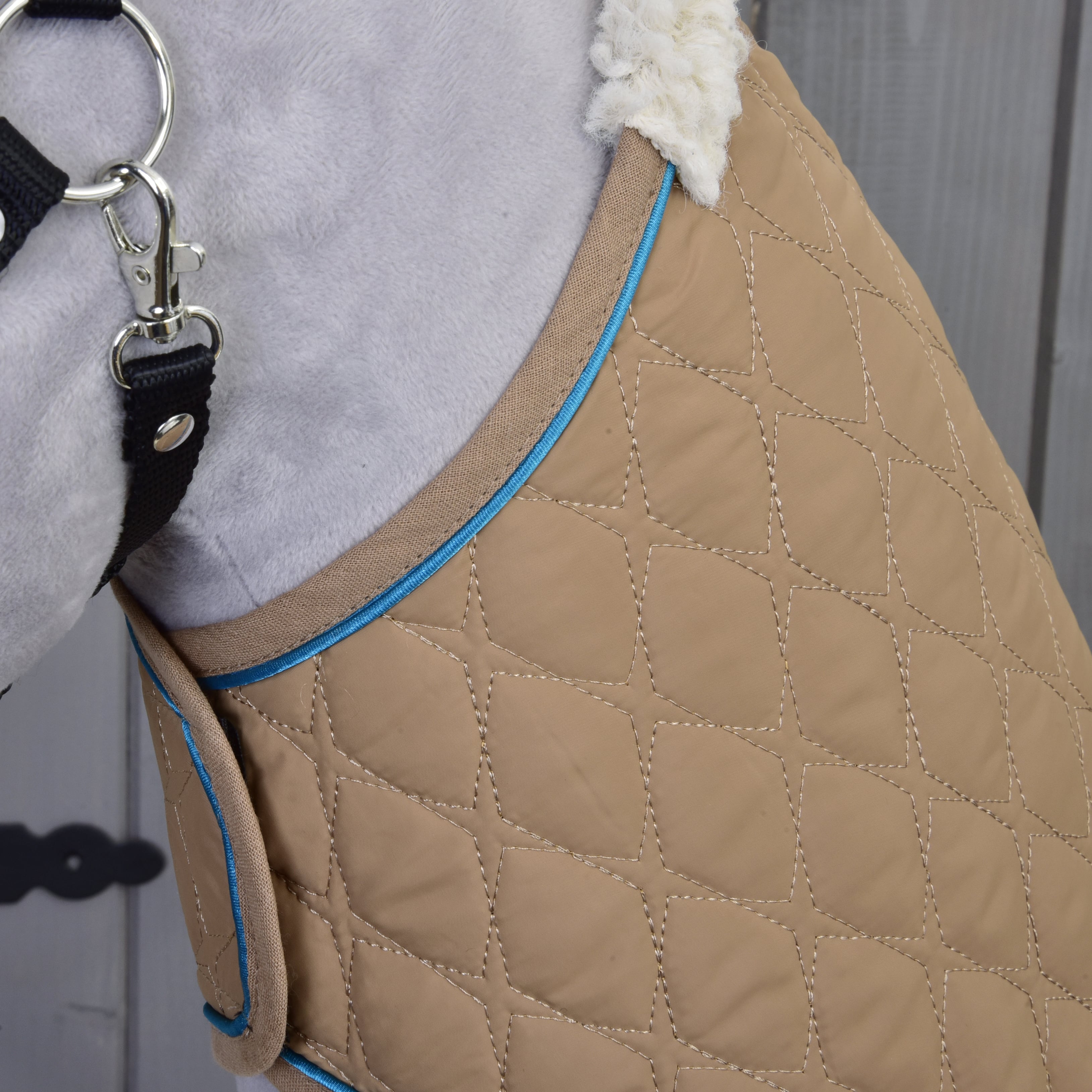 Beautiful blanket and ear bonnet set for your Hobby Horse that not only serves as a decoration for your horse, but also keeps him warm and protects him from pesky insects