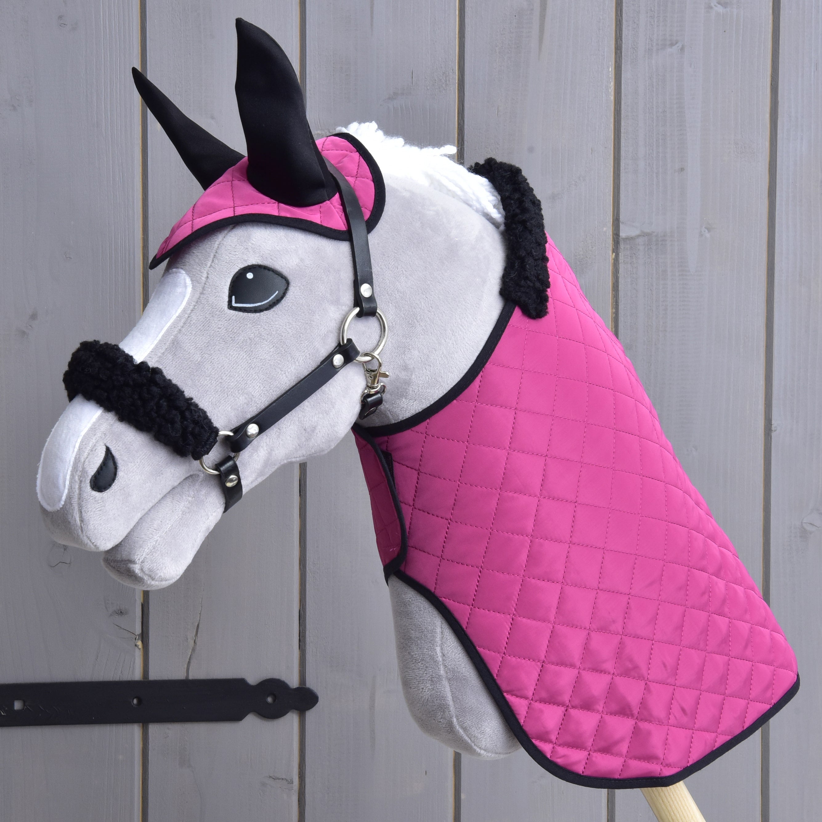 A beautiful set containing ear bonnet, blanket and halter for your Hobby Horse. All three accessories belong to the basic equipment of every rider. The blanket and ear bonnet will protect your horse and the reins will take him safely home to the stable. Don't worry about what to combine with what, this set will sort it out for you.
