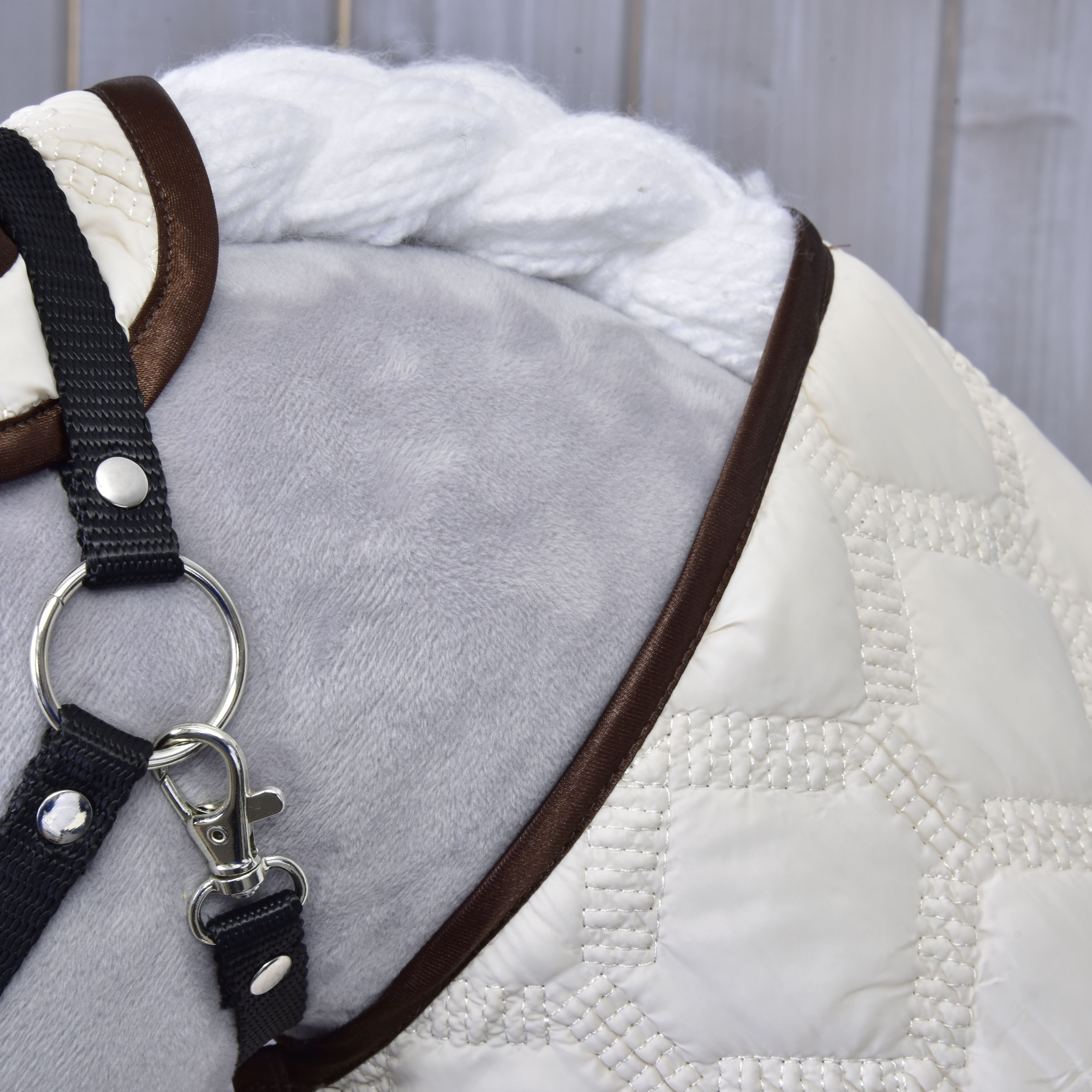 Beautiful blanket and ear bonnet set for your Hobby Horse that not only serves as a decoration for your horse, but also keeps him warm and protects him from pesky insects